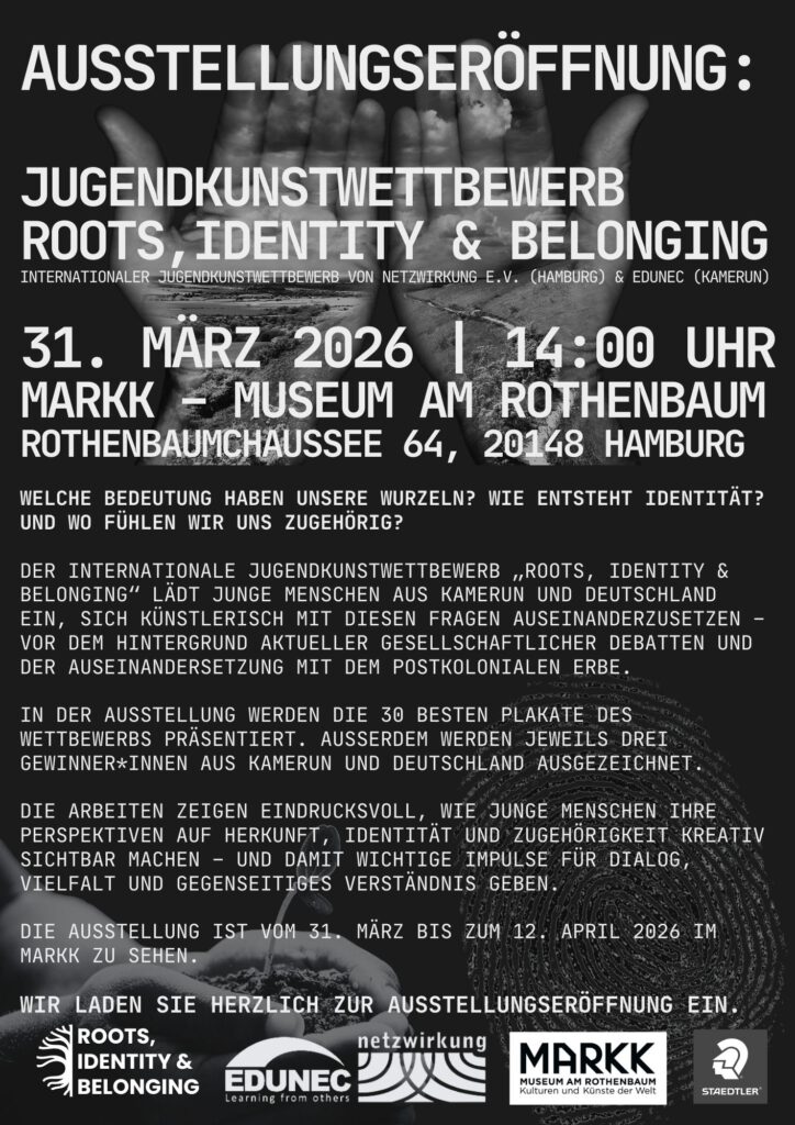 Außerdem werden im Rahmen unserer Netzwerkarbeit Vernetzungstreffen der ehemaligen Bildungsfahrtler*innen und der Schüler*innen der kamerunisch-deutschen Austauschbegegnungen sowie Konferenzen für Schulpartnerschaften als auch zum Counseling stattfinden. Einer der Höhepunkte dieser Aktionswochen bildet ein länderübergreifender Schüler*innenwettbewerb zum Motto der Aktionswochen „Roots, identity und belonging“, der in einer Ausstellung im MARKK Museum am Rothenbaum münden wird. Für einen spannenden literarischen Abend wird die Autorin und Aktivistin Mirriane Mahn sorgen. Ein weiteres Highlight und zugleich krönender Abschluss wird schließlich der Galaabend mit einem Auftritt des kamerunischen Jazzmusikers Terrence Ngassa am Ende der beiden Aktionswochen sein – genauer gesagt am 10. April 2026 – bitte vormerken 😉.