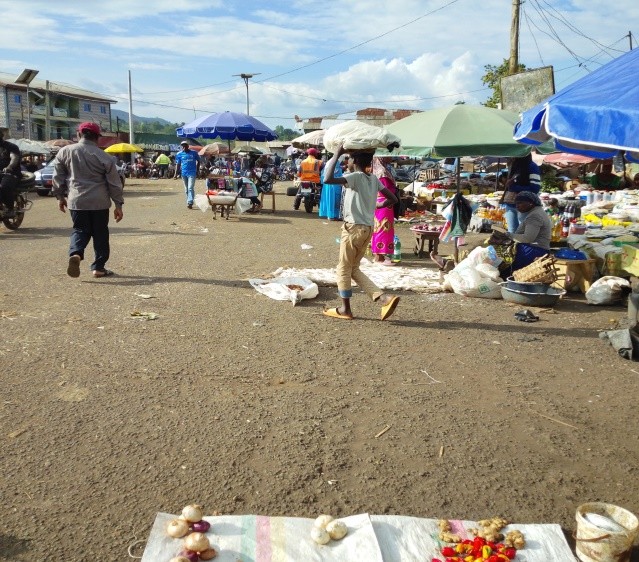 Saina ist jetzt nur 9 Jahre alt, aber muss sehr früh, um 5 Uhr morgens aufstehen, beten und sich auf diesen anderen Arbeitstag vorbereiten. Sie ist Erdnussverkäuferin. Um halb sechs begibt sie sich auf den Markt. Natürlich begleitet sie ihre Mutter auf die drei Kilometer lange Strecke. Dort sucht die 26-jährige Mutter frische und reife Erdnüsse und verhandelt bis sie einen 20 Liter-Becher voller Erdnüsse zum günstigen Preis bekommen kann. Dann packt sie das ganze in einem Sack und hebt ihn auf den Kopf ihrer kleinen Tochter, die diese Laste alleine bis nach Hause trägt. Die Mutter; Marktfrau von Beruf, verbringt den ganzen Tag auf den Markt, wo sie Tomaten und Gemüse verkauft.